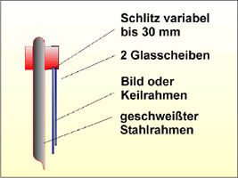 Bilderrahmen aus Stahl- rohr. Die elegante Art außergewöhnliche Akzente zusetzen. Ein Rahmen, der nicht platt an der Wand hängt, sondern die dritte Dimension mit einbe- zieht.